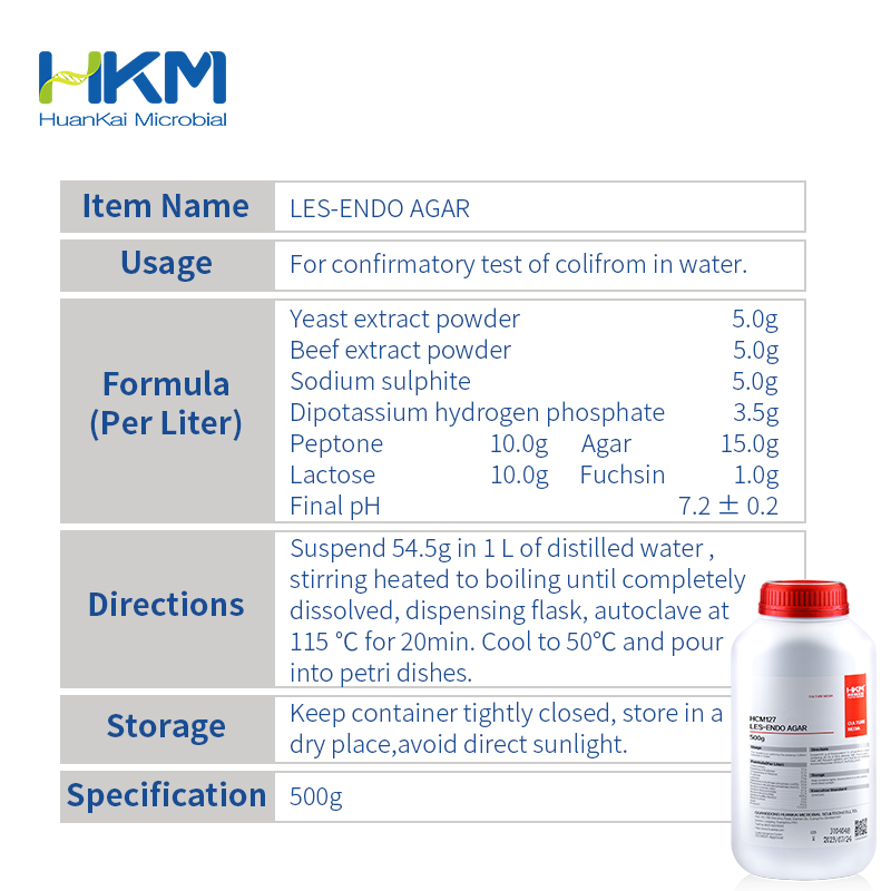 Peptone, yeast extract powder, beef extract powder provides carbon and nitrogen sources, vitamins and minerals; lactose as fermentable sugars; agar as medium coagulant; potassium hydrogen phosphate as buffer.